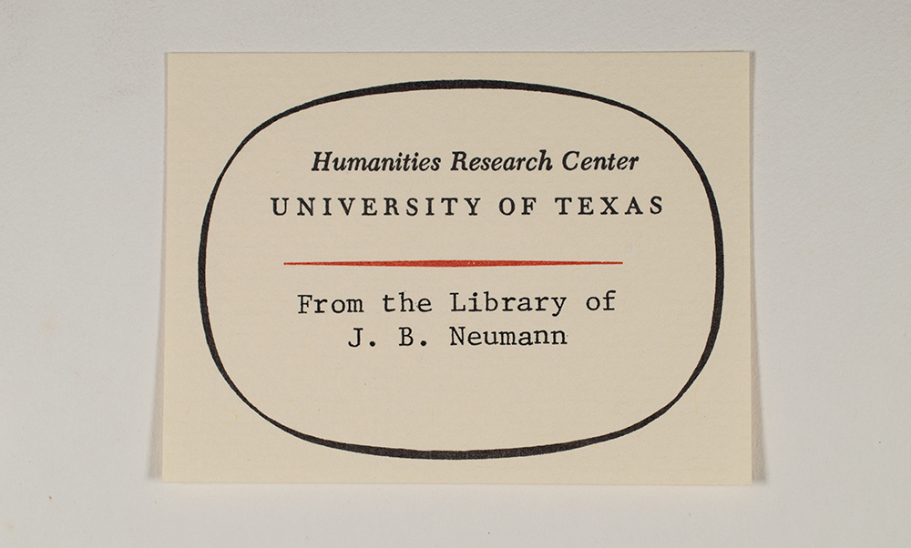 In 1962, nearly one year after the German-Jewish art dealer, gallerist, and publisher J. B. (Israel Ber) Neumann (1887-1961) had passed, The University of Texas at Austin purchased his personal library for $10,000, a small sum for what today could easily be valued at tenfold that amount. The director of the University Art Museum at the time, Donald B. Goodall, wrote that Neumann’s “Art and Literature Library,” as it was first introduced in a wired message from the director at the Museum of Modern Art, “may form a nucleus of research and publication around one of the major centers of critical and dealing activity during the important years when Modern Art was being introduced to this country.”3