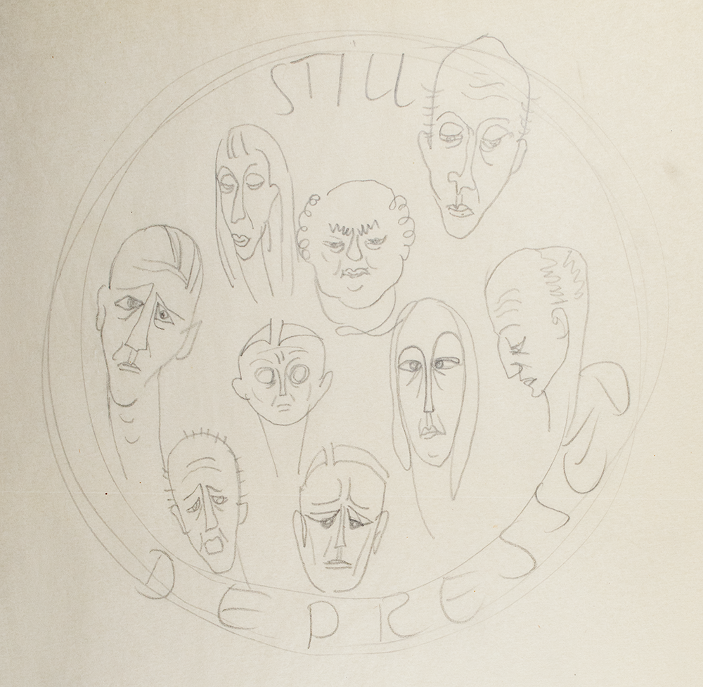 Neumann maintained a lifelong passion not only for the “creative moment of collecting,” but also for his professional task: nurturing “the commerce between artist and admirer,” especially involving works that were still unknown. As an art dealer, he thereby had a hand in building some of the most important private and public collections in the United States while also supporting the artistic and financial efforts of his artists. His Neumann’s empathy comes into focus in a folded sketch he composed under the heading “Still Depressed.”